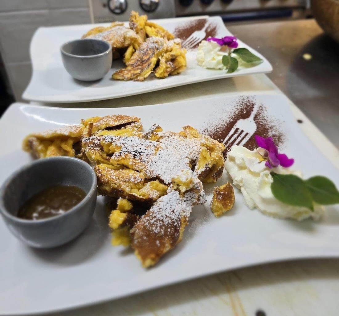 Il menù del ristorante è pensato per soddisfare ogni palato. Per gli amanti del pesce, proponiamo piatti unici come le linguine allo scoglio, i paccheri con piovra, e le trote con gamberi, oltre alle croccanti fritture miste, tutte preparate con pesce fresco e di alta qualità. Accanto a questi sapori, celebriamo la tradizione carnica con il frico e i Cjarsons, preparati con cura per offrire un’esperienza autentica del Friuli.